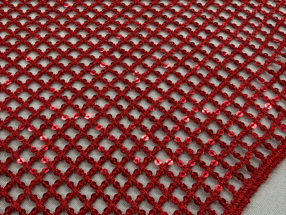 ML160 Red Sequin Diamond Mesh Fabric