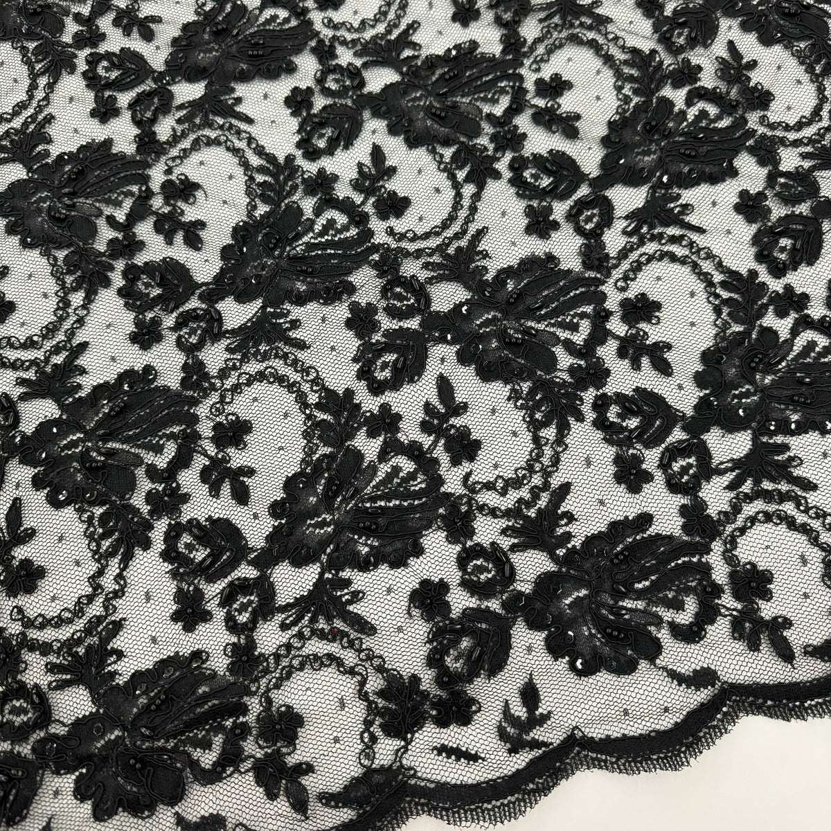 ML139 BLACK Beaded and Corded Alencon Lace
