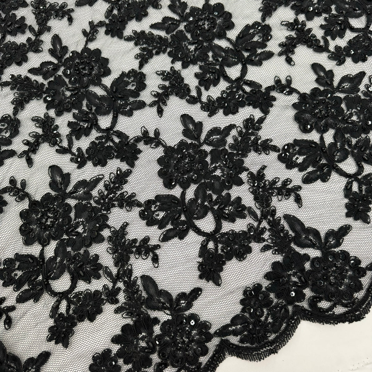 ML134 BLACK Beaded and Corded Alencon Lace